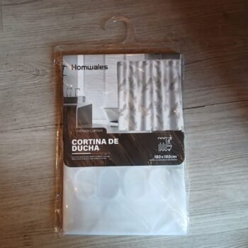 Cortina de baño de polietileno tramada con 12 ganchos de 180 cm $13.200