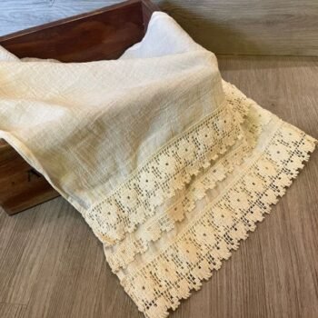 Toalla de mano de algodon con puntillas de 50 x 29 cm $8.800