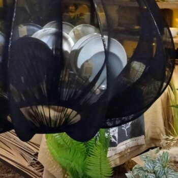 Colgante artesanal de microtul negro modelo Guiza chico de 45 x 50 cm