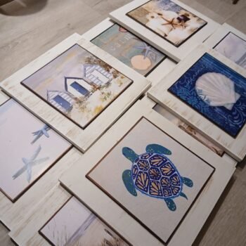 Cuadro decorativo de madera varios diseños 22 x 22 cm – Playa / Mar $16.400