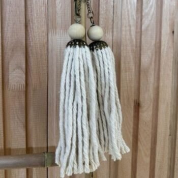 3 cuotas s/interés de $2420 -20℅ off en efectivo $5808Borla sujeta cortina de hilos de algodon color crudo con dije de madera y cadena de bronce. Por unidad.