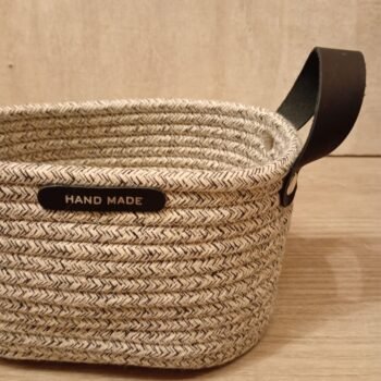 3 cuotas s/interés de $5627 -20℅ off en efectivo $13504Cesta ovalada de fibras de algodón natural con manijas de cuero