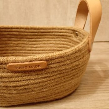 3 cuotas s/interés de $9493 -20℅ off en efectivo $22784Cesta ovalada de fibras de yut natural y manijas de cuero