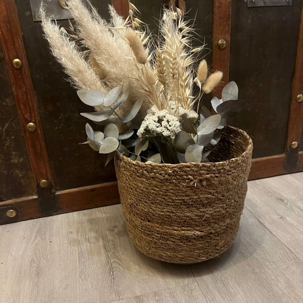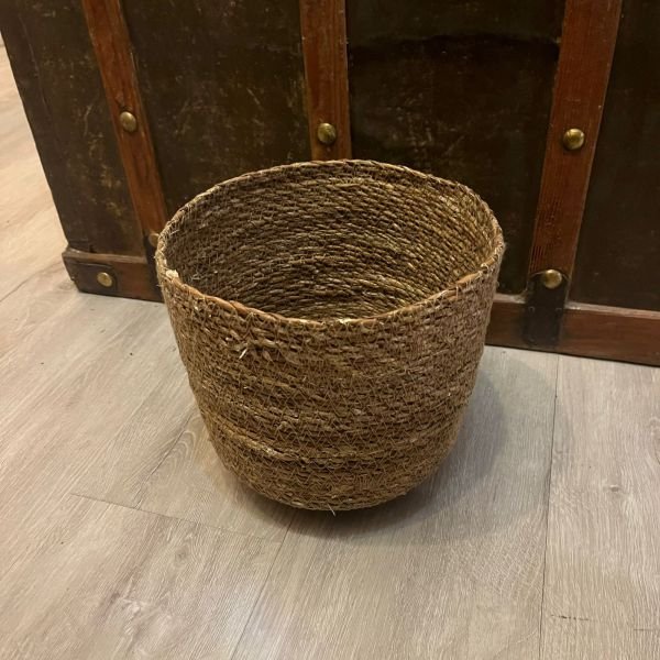 Canasto chico de seagrass natural circular de 22 x 23 cm