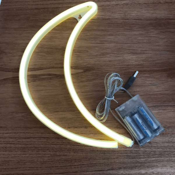 Cartel Neon Led Luna a pilas o USB de 13 x 30 cm en tono luz calida