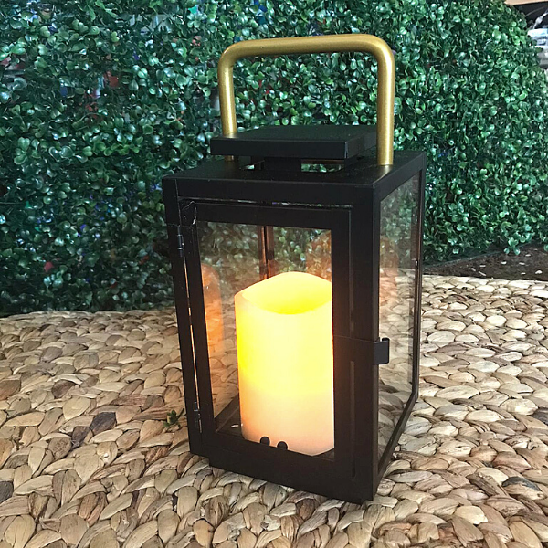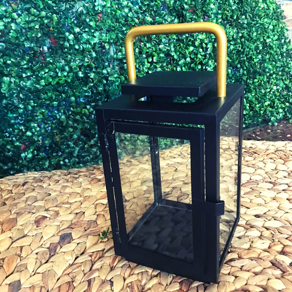 Farol de Metal Negro Mate y Vidrio, con Asa Dorada.