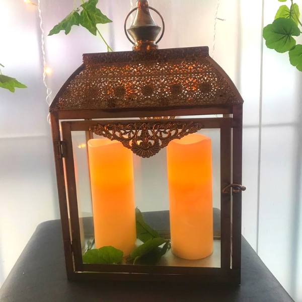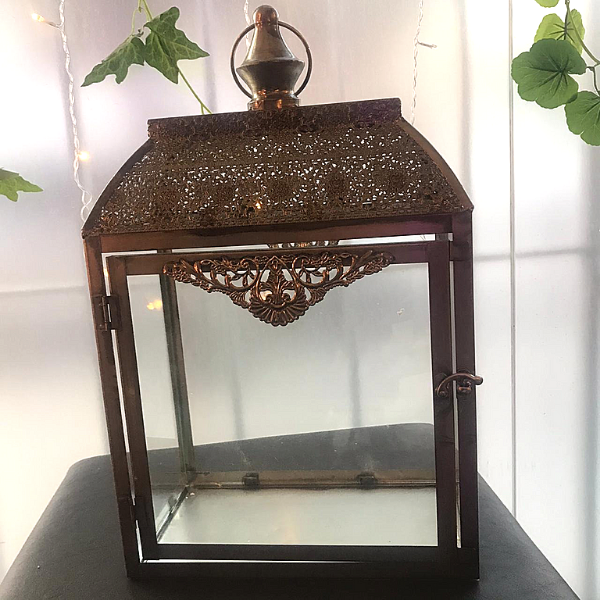 Farol Fanal Porta Vela en Metal Trabajado y Vidrio