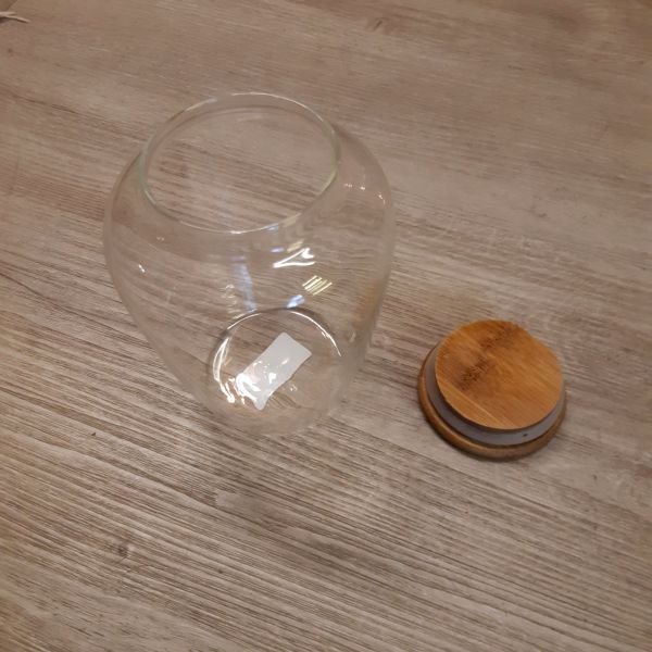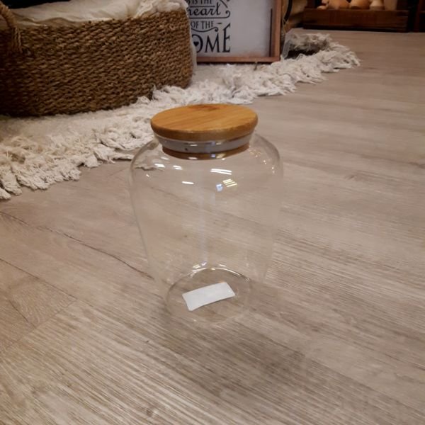 Frasco de vidrio con tapa de bamboo de 12 x 10 cm