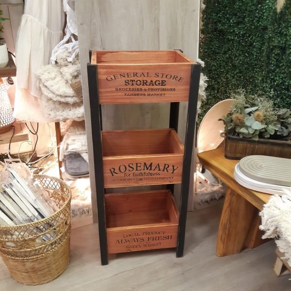 Mueble exhibidor de madera con 3 cajones fijos de 37 x 28 x 87 cm