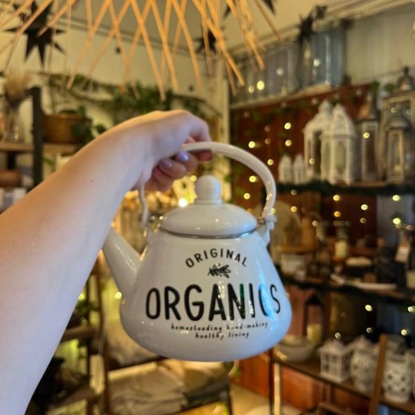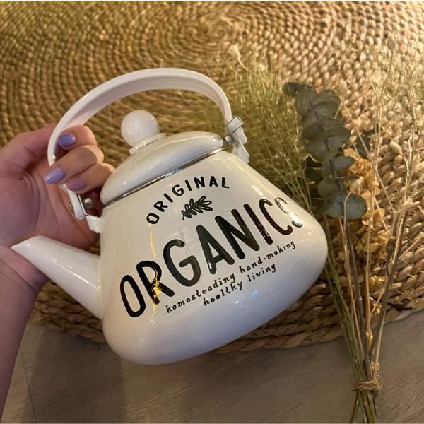 Pava enlozada con tapa e inscripcion estampada de 1,3 lts