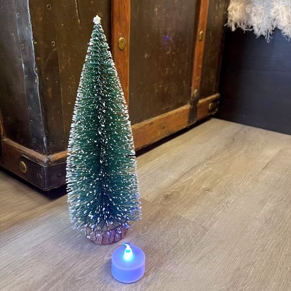 Pinito / Pino de navidad nevado con base de madera de 9 x 26 cm