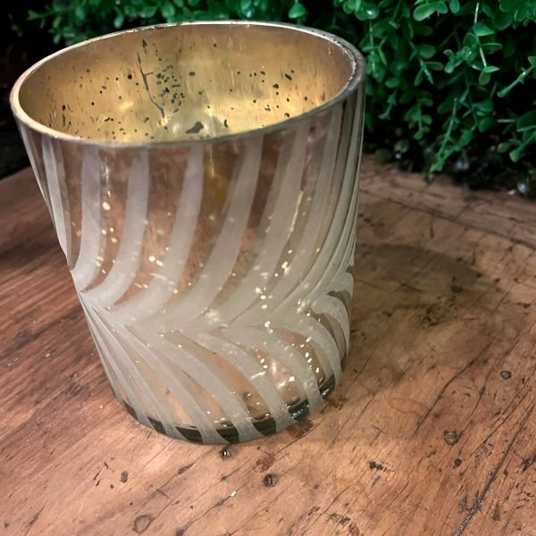 Posa vela de vidrio labrado en forma de vaso de 10 x 12 cm