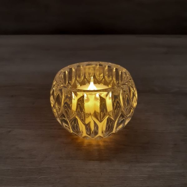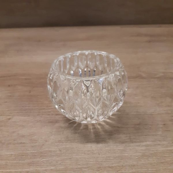 Posa vela semi esfera chica de vidrio facetado de 7 x 6 cm