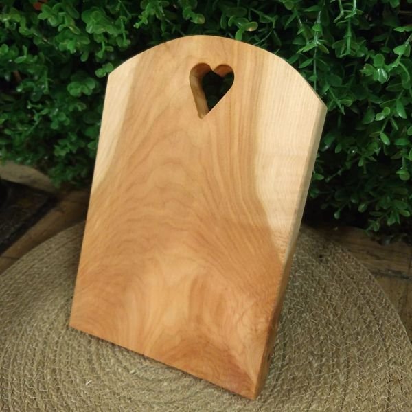 Tabla de madera chica con corazon calado de 14 x 20 cm