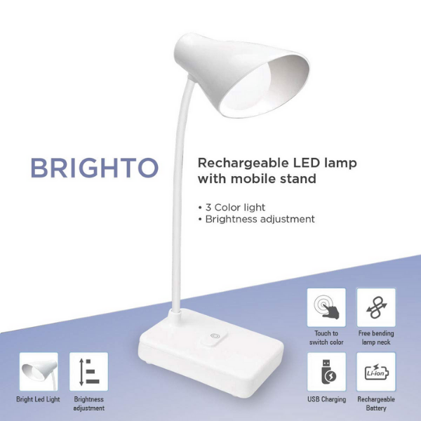 Lámpara LED recargable con soporte móvil / luz de 3 colores / ajuste de brillo.