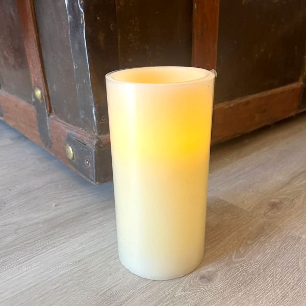 Fanal plástico cilindro Entrelazado con vela led. Disponible en Color Negro Envejecido y Blanco Envejecido.